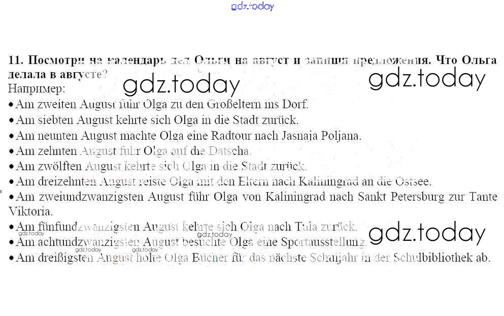 На страницах сайта gdz.today вы найдете учебный и вспомогательный материал, направленный на улучшения знаний школьной программы. ГДЗ - онлайн мир знаний Решение к главе 1. Летние каникулы 11 Рабочей тетради по Немецкому языку для 7 класса Радченко, Глушак Просвещение Wunderkinder 2012