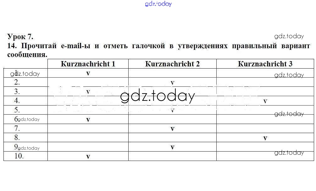 Ответы к Решение к главе 1. Летние каникулы 14 Рабочей тетради по Немецкому языку для 7 класса Радченко, Глушак Просвещение Wunderkinder 2012