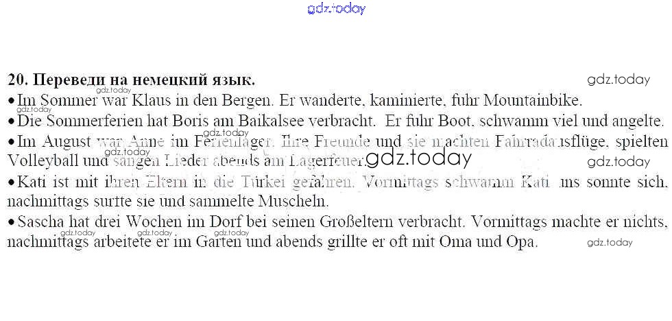 На страницах сайта gdz.today вы найдете учебный и вспомогательный материал, направленный на улучшения знаний школьной программы. ГДЗ - онлайн мир знаний Решение к главе 1. Летние каникулы 20 Рабочей тетради по Немецкому языку для 7 класса Радченко, Глушак Просвещение Wunderkinder 2012