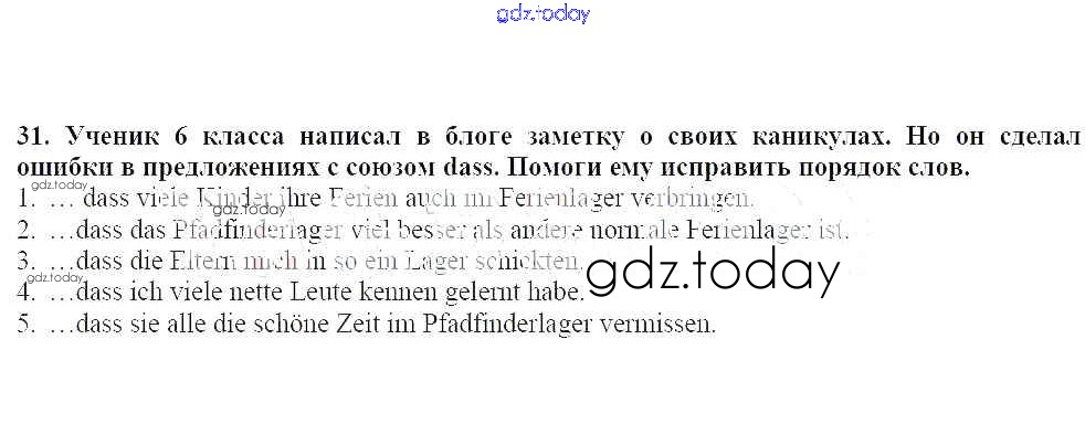 На страницах сайта gdz.today вы найдете учебный и вспомогательный материал, направленный на улучшения знаний школьной программы. ГДЗ - онлайн мир знаний Решение к главе 1. Летние каникулы 31 Рабочей тетради по Немецкому языку для 7 класса Радченко, Глушак Просвещение Wunderkinder 2012
