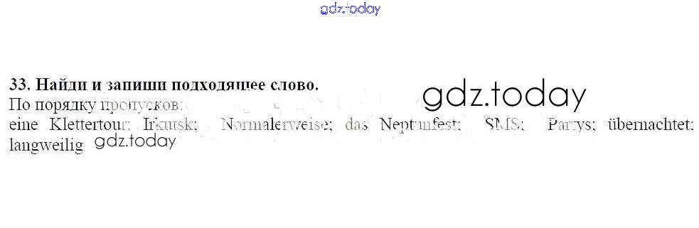 На страницах сайта gdz.today вы найдете учебный и вспомогательный материал, направленный на улучшения знаний школьной программы. ГДЗ - онлайн мир знаний Решение к главе 1. Летние каникулы 33 Рабочей тетради по Немецкому языку для 7 класса Радченко, Глушак Просвещение Wunderkinder 2012