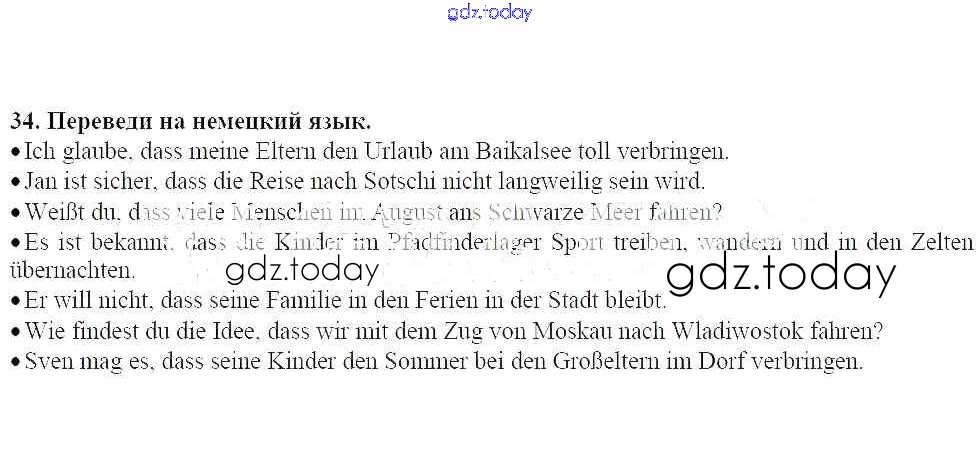 На страницах сайта gdz.today вы найдете учебный и вспомогательный материал, направленный на улучшения знаний школьной программы. ГДЗ - онлайн мир знаний Решение к главе 1. Летние каникулы 34 Рабочей тетради по Немецкому языку для 7 класса Радченко, Глушак Просвещение Wunderkinder 2012