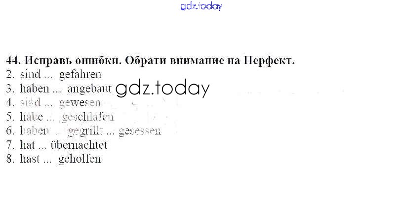 На страницах сайта gdz.today вы найдете учебный и вспомогательный материал, направленный на улучшения знаний школьной программы. ГДЗ - онлайн мир знаний Решение к главе 1. Летние каникулы 44 Рабочей тетради по Немецкому языку для 7 класса Радченко, Глушак Просвещение Wunderkinder 2012
