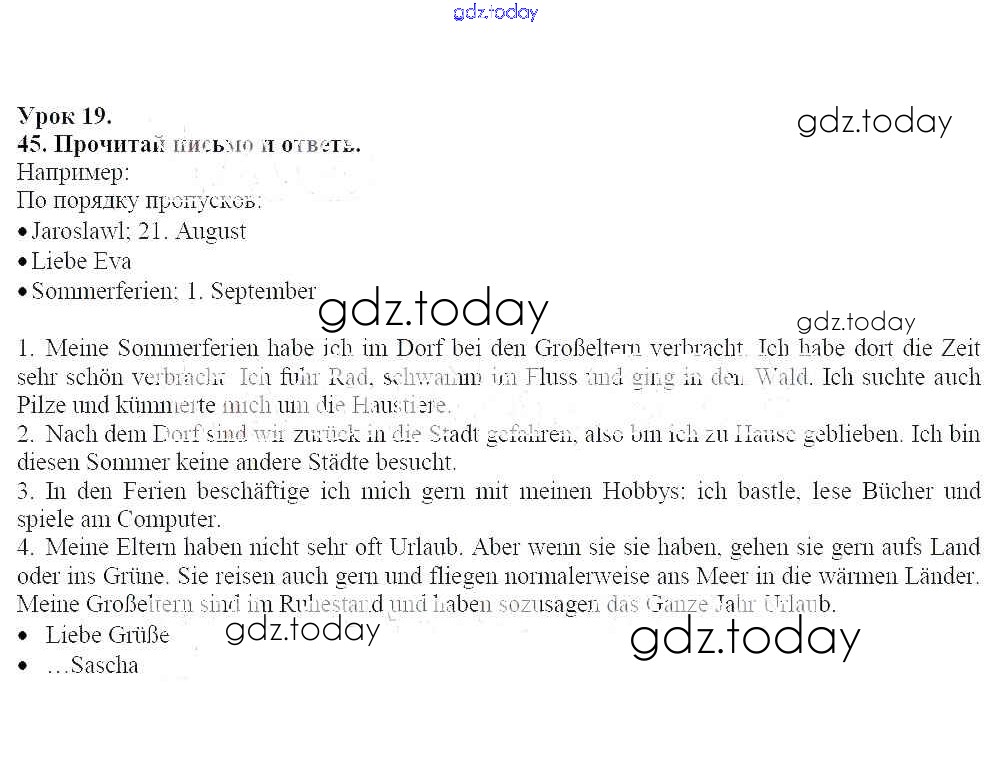 На страницах сайта gdz.today вы найдете учебный и вспомогательный материал, направленный на улучшения знаний школьной программы. ГДЗ - онлайн мир знаний Решение к главе 1. Летние каникулы 45 Рабочей тетради по Немецкому языку для 7 класса Радченко, Глушак Просвещение Wunderkinder 2012