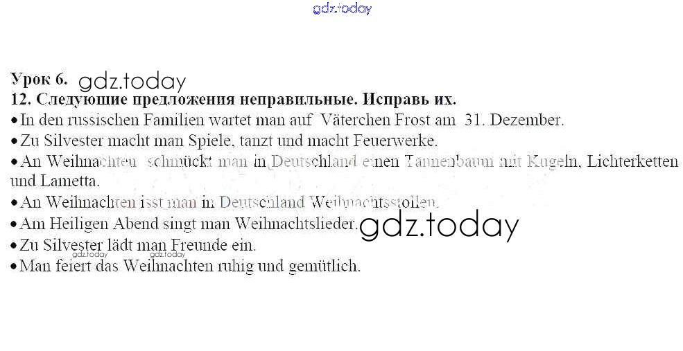 Ответы к Решение к главе 2. Зимние праздники в Германии и России 12 Рабочей тетради по Немецкому языку для 7 класса Радченко, Глушак Просвещение Wunderkinder 2012