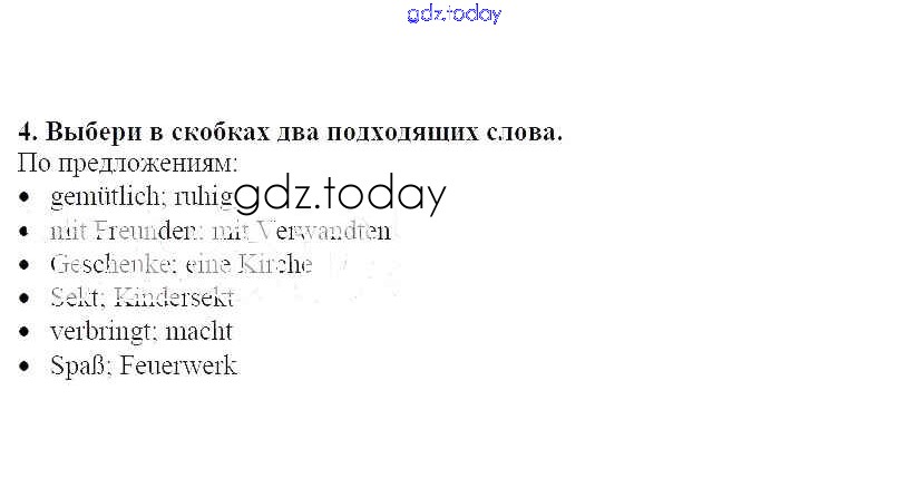 На страницах сайта gdz.today вы найдете учебный и вспомогательный материал, направленный на улучшения знаний школьной программы. ГДЗ - онлайн мир знаний Решение к главе 2. Зимние праздники в Германии и России 4 Рабочей тетради по Немецкому языку для 7 класса Радченко, Глушак Просвещение Wunderkinder 2012