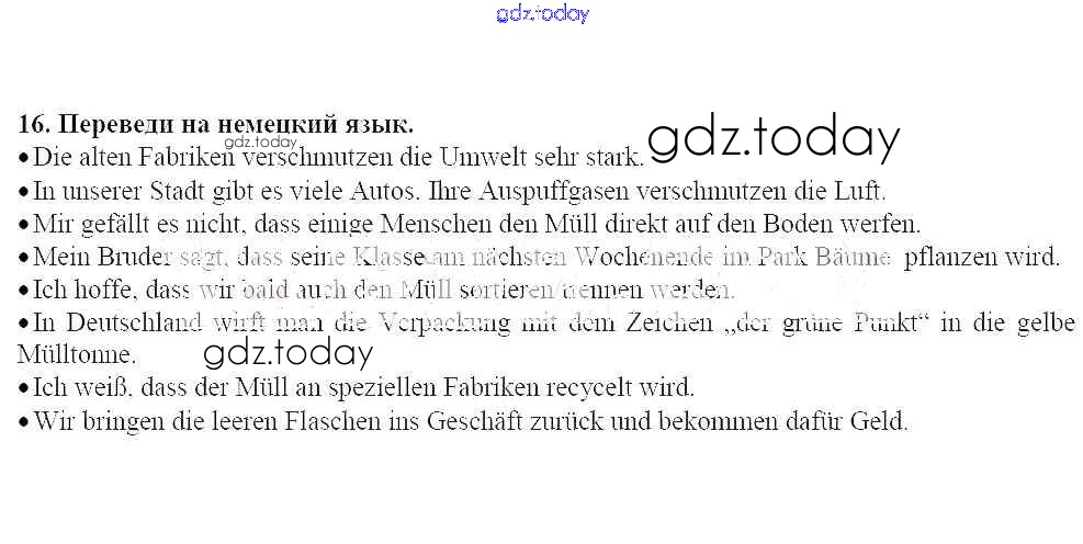 На страницах сайта gdz.today вы найдете учебный и вспомогательный материал, направленный на улучшения знаний школьной программы. ГДЗ - онлайн мир знаний Решение к главе 3. Защита окружающей среды 16 Рабочей тетради по Немецкому языку для 7 класса Радченко, Глушак Просвещение Wunderkinder 2012