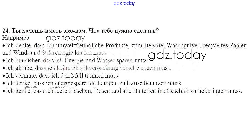 На страницах сайта gdz.today вы найдете учебный и вспомогательный материал, направленный на улучшения знаний школьной программы. ГДЗ - онлайн мир знаний Решение к главе 3. Защита окружающей среды 24 Рабочей тетради по Немецкому языку для 7 класса Радченко, Глушак Просвещение Wunderkinder 2012