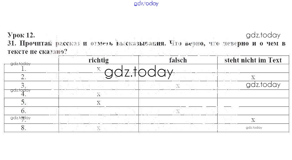На страницах сайта gdz.today вы найдете учебный и вспомогательный материал, направленный на улучшения знаний школьной программы. ГДЗ - онлайн мир знаний Решение к главе 3. Защита окружающей среды 31 Рабочей тетради по Немецкому языку для 7 класса Радченко, Глушак Просвещение Wunderkinder 2012