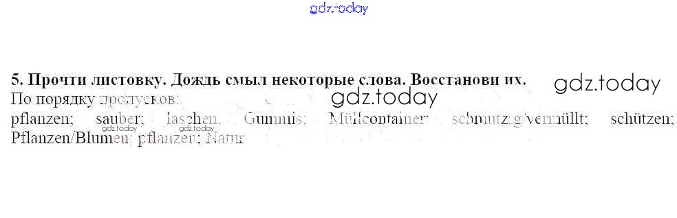 На страницах сайта gdz.today вы найдете учебный и вспомогательный материал, направленный на улучшения знаний школьной программы. ГДЗ - онлайн мир знаний Решение к главе 3. Защита окружающей среды 5 Рабочей тетради по Немецкому языку для 7 класса Радченко, Глушак Просвещение Wunderkinder 2012