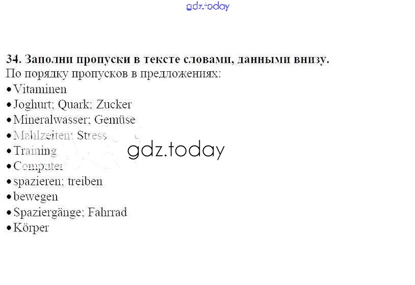 На страницах сайта gdz.today вы найдете учебный и вспомогательный материал, направленный на улучшения знаний школьной программы. ГДЗ - онлайн мир знаний Решение к главе 4. Здоровье 34 Рабочей тетради по Немецкому языку для 7 класса Радченко, Глушак Просвещение Wunderkinder 2012