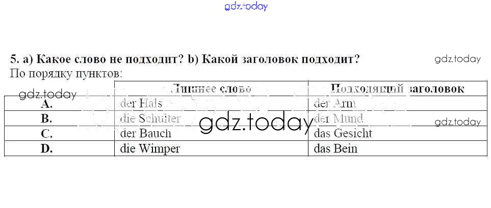 На страницах сайта gdz.today вы найдете учебный и вспомогательный материал, направленный на улучшения знаний школьной программы. ГДЗ - онлайн мир знаний Решение к главе 4. Здоровье 5 Рабочей тетради по Немецкому языку для 7 класса Радченко, Глушак Просвещение Wunderkinder 2012