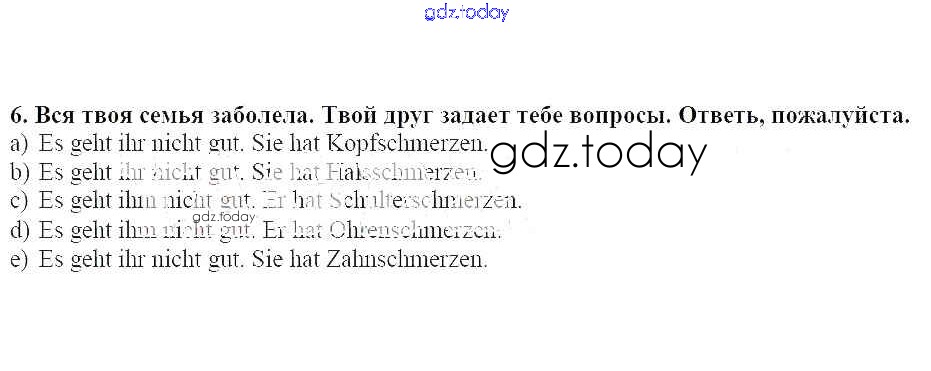 На страницах сайта gdz.today вы найдете учебный и вспомогательный материал, направленный на улучшения знаний школьной программы. ГДЗ - онлайн мир знаний Решение к главе 4. Здоровье 6 Рабочей тетради по Немецкому языку для 7 класса Радченко, Глушак Просвещение Wunderkinder 2012