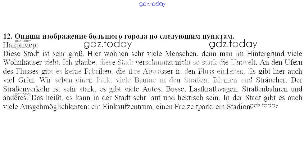 На страницах сайта gdz.today вы найдете учебный и вспомогательный материал, направленный на улучшения знаний школьной программы. ГДЗ - онлайн мир знаний Решение к главе 5. Город и деревня 12 Рабочей тетради по Немецкому языку для 7 класса Радченко, Глушак Просвещение Wunderkinder 2012