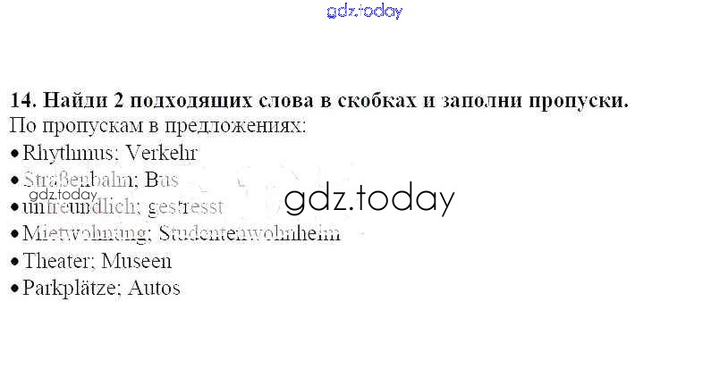 На страницах сайта gdz.today вы найдете учебный и вспомогательный материал, направленный на улучшения знаний школьной программы. ГДЗ - онлайн мир знаний Решение к главе 5. Город и деревня 14 Рабочей тетради по Немецкому языку для 7 класса Радченко, Глушак Просвещение Wunderkinder 2012
