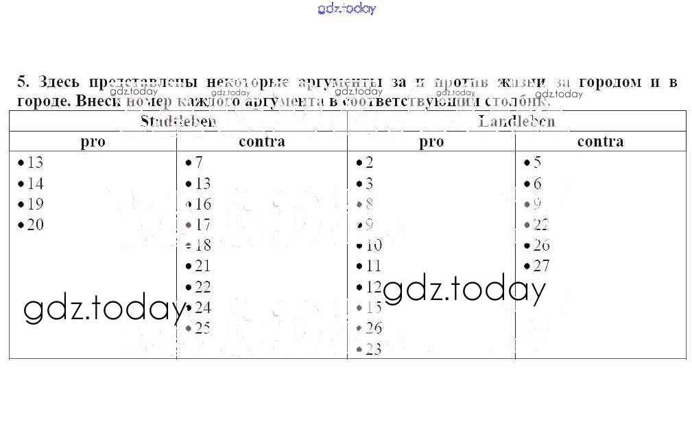 На страницах сайта gdz.today вы найдете учебный и вспомогательный материал, направленный на улучшения знаний школьной программы. ГДЗ - онлайн мир знаний Решение к главе 5. Город и деревня 5 Рабочей тетради по Немецкому языку для 7 класса Радченко, Глушак Просвещение Wunderkinder 2012