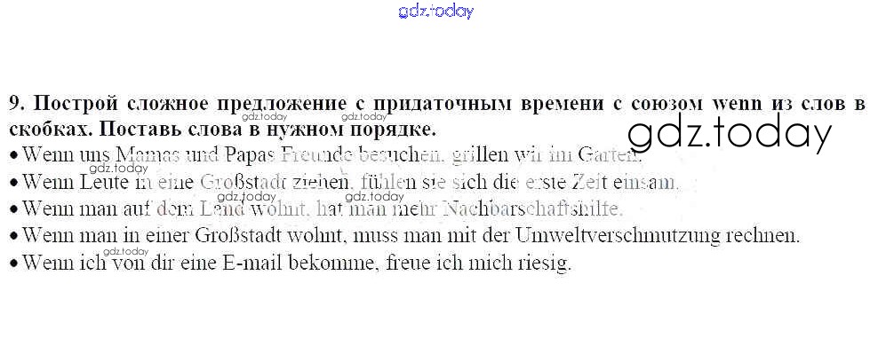 На страницах сайта gdz.today вы найдете учебный и вспомогательный материал, направленный на улучшения знаний школьной программы. ГДЗ - онлайн мир знаний Решение к главе 5. Город и деревня 9 Рабочей тетради по Немецкому языку для 7 класса Радченко, Глушак Просвещение Wunderkinder 2012
