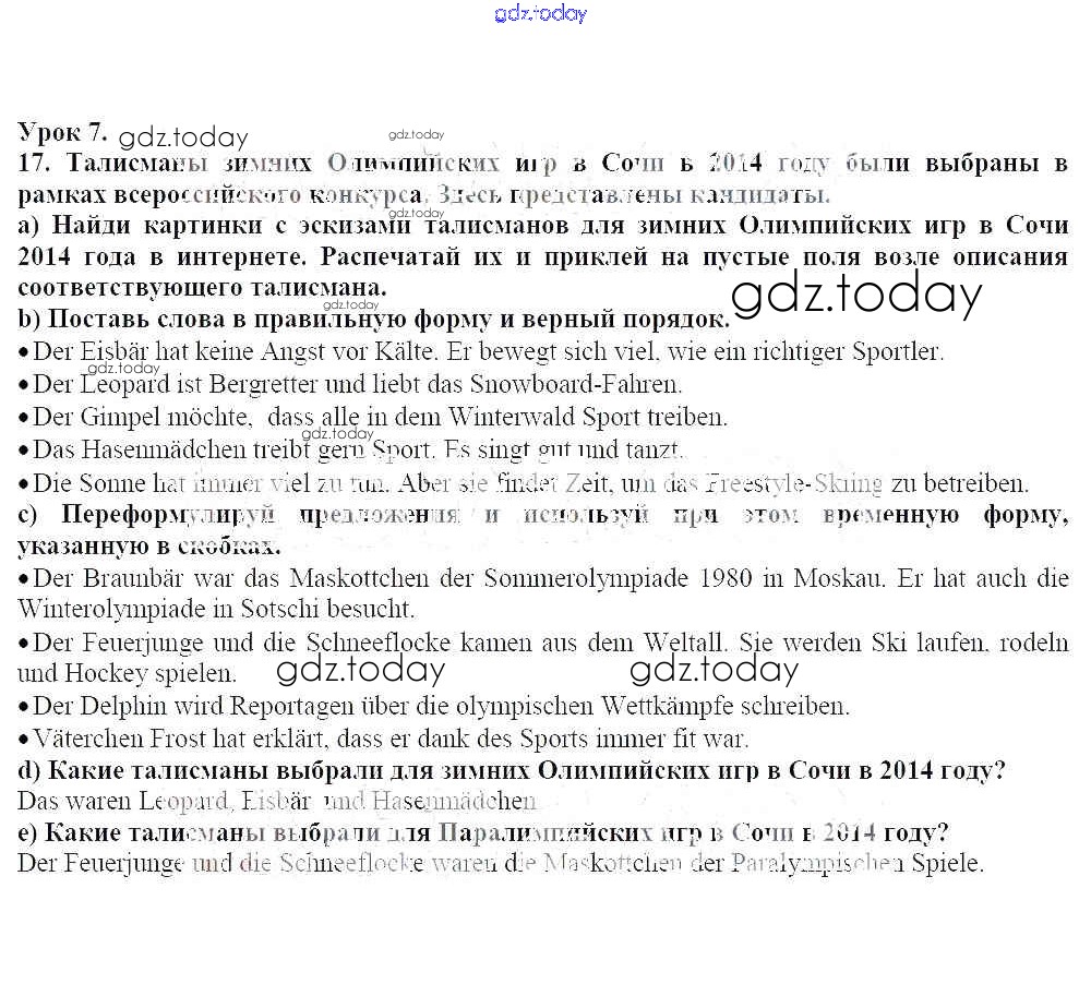 На страницах сайта gdz.today вы найдете учебный и вспомогательный материал, направленный на улучшения знаний школьной программы. ГДЗ - онлайн мир знаний Решение к главе 6. Спорт 17 Рабочей тетради по Немецкому языку для 7 класса Радченко, Глушак Просвещение Wunderkinder 2012