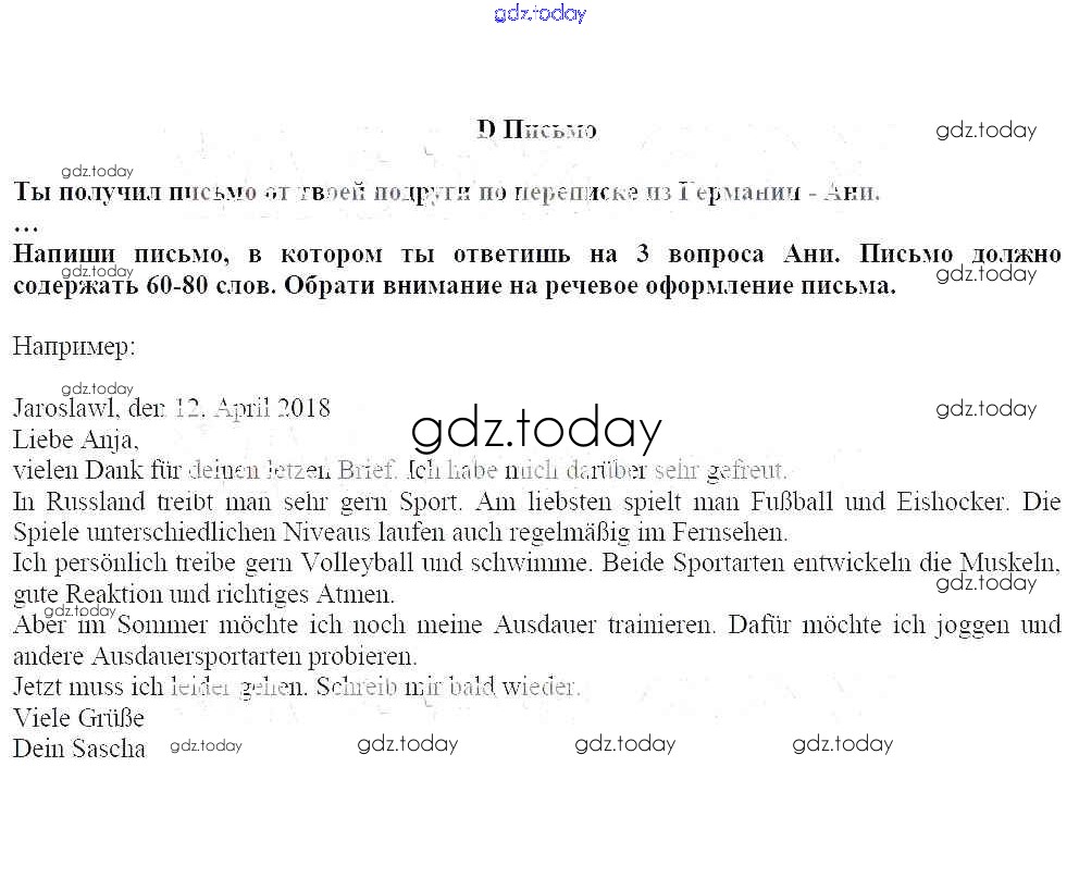 На страницах сайта gdz.today вы найдете учебный и вспомогательный материал, направленный на улучшения знаний школьной программы. ГДЗ - онлайн мир знаний ОГЭ. Подготовка к основному государственному экзамену Решение к главе 6. Спорт Письмо Рабочей тетради по Немецкому языку для 7 класса Радченко, Глушак Просвещение Wunderkinder 2012