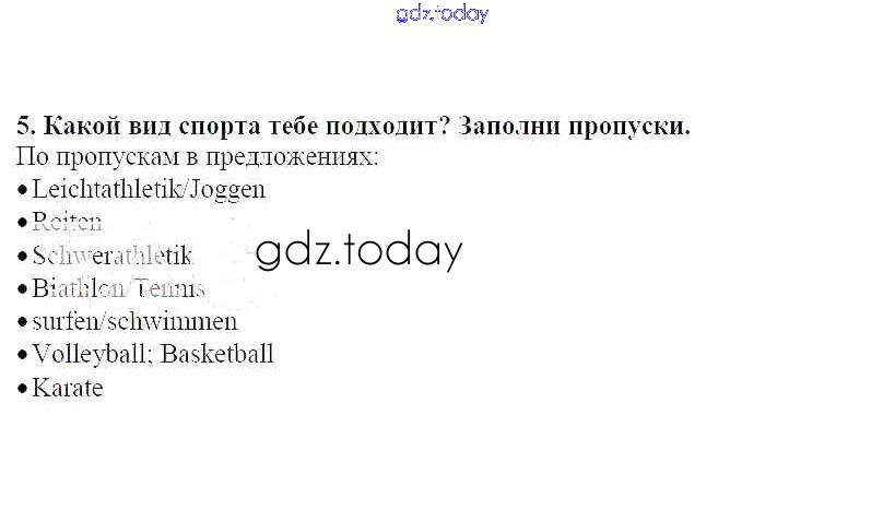 На страницах сайта gdz.today вы найдете учебный и вспомогательный материал, направленный на улучшения знаний школьной программы. ГДЗ - онлайн мир знаний Решение к главе 6. Спорт 5 Рабочей тетради по Немецкому языку для 7 класса Радченко, Глушак Просвещение Wunderkinder 2012