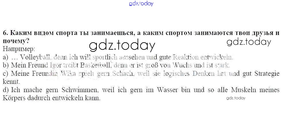 На страницах сайта gdz.today вы найдете учебный и вспомогательный материал, направленный на улучшения знаний школьной программы. ГДЗ - онлайн мир знаний Решение к главе 6. Спорт 6 Рабочей тетради по Немецкому языку для 7 класса Радченко, Глушак Просвещение Wunderkinder 2012