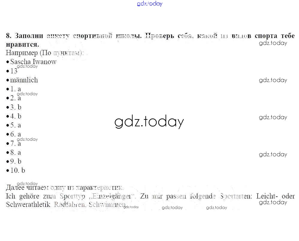 Ответы к Решение к главе 6. Спорт 8 Рабочей тетради по Немецкому языку для 7 класса Радченко, Глушак Просвещение Wunderkinder 2012