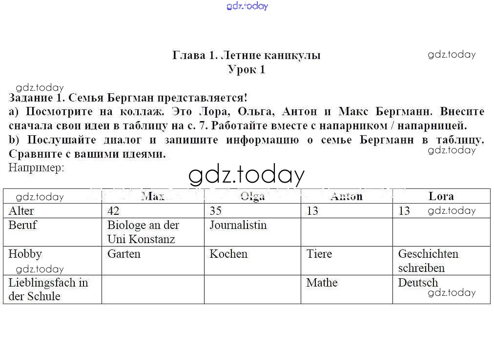 На страницах сайта gdz.today вы найдете учебный и вспомогательный материал, направленный на улучшения знаний школьной программы. ГДЗ - онлайн мир знаний Урок 1 Решение к главе 1. Летние каникулы 1 Учебнику по Немецкому языку для 7 класса Радченко, Конго Просвещение Wunderkinder 2016
