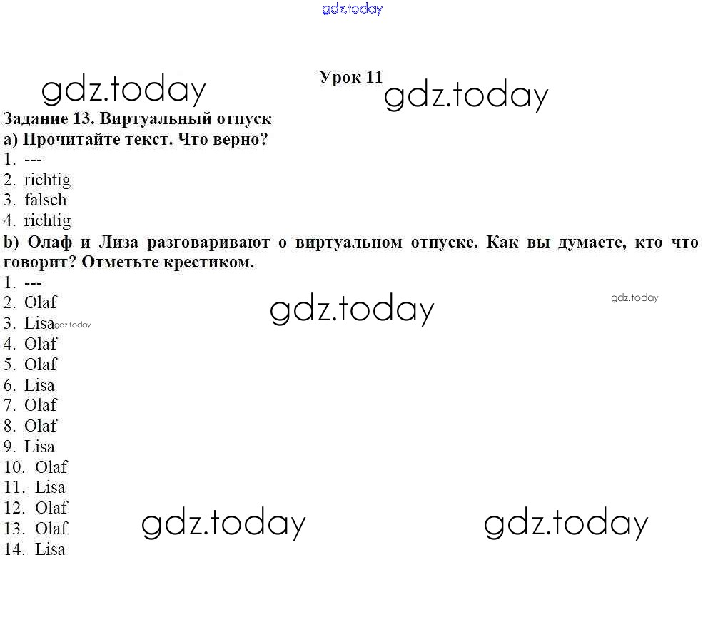 На страницах сайта gdz.today вы найдете учебный и вспомогательный материал, направленный на улучшения знаний школьной программы. ГДЗ - онлайн мир знаний Уроки 2-18 Решение к главе 1. Летние каникулы 13 Учебнику по Немецкому языку для 7 класса Радченко, Конго Просвещение Wunderkinder 2016