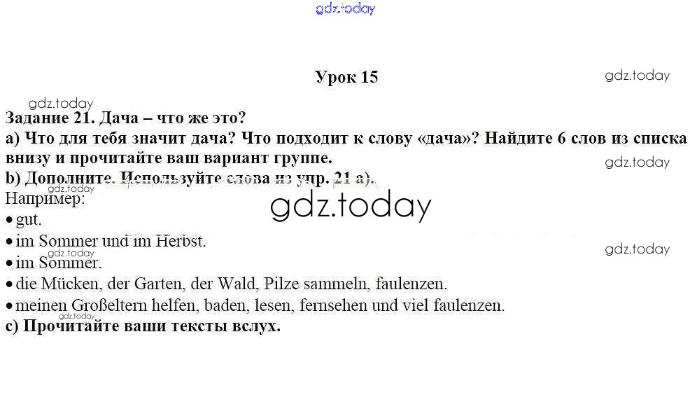На страницах сайта gdz.today вы найдете учебный и вспомогательный материал, направленный на улучшения знаний школьной программы. ГДЗ - онлайн мир знаний Уроки 2-18 Решение к главе 1. Летние каникулы 21 Учебнику по Немецкому языку для 7 класса Радченко, Конго Просвещение Wunderkinder 2016