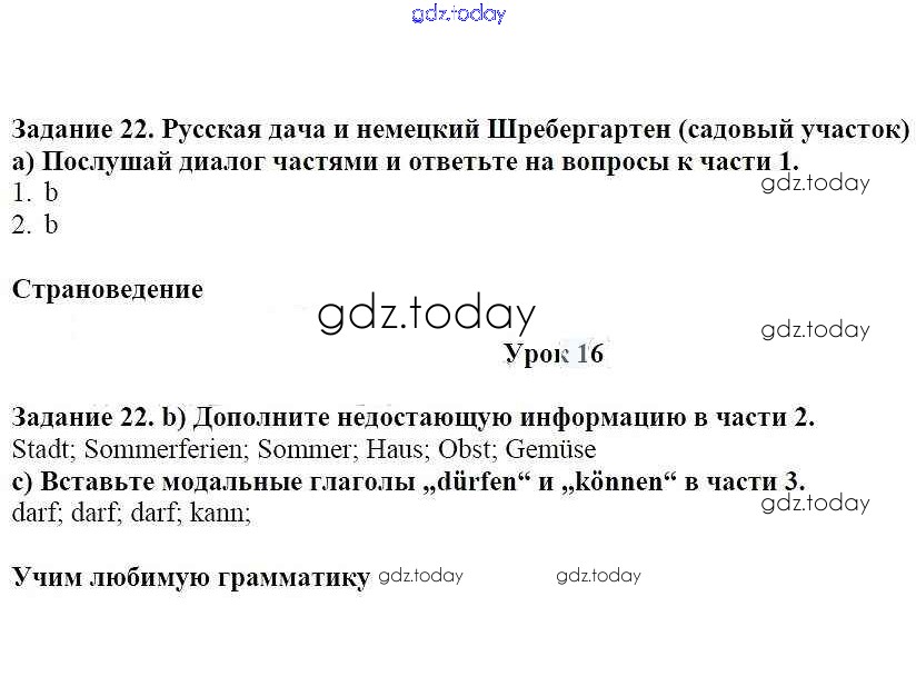 На страницах сайта gdz.today вы найдете учебный и вспомогательный материал, направленный на улучшения знаний школьной программы. ГДЗ - онлайн мир знаний Уроки 2-18 Решение к главе 1. Летние каникулы 22 Учебнику по Немецкому языку для 7 класса Радченко, Конго Просвещение Wunderkinder 2016
