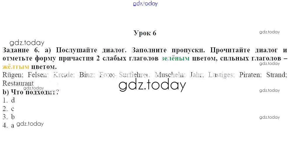 На страницах сайта gdz.today вы найдете учебный и вспомогательный материал, направленный на улучшения знаний школьной программы. ГДЗ - онлайн мир знаний Уроки 2-18 Решение к главе 1. Летние каникулы 6 Учебнику по Немецкому языку для 7 класса Радченко, Конго Просвещение Wunderkinder 2016