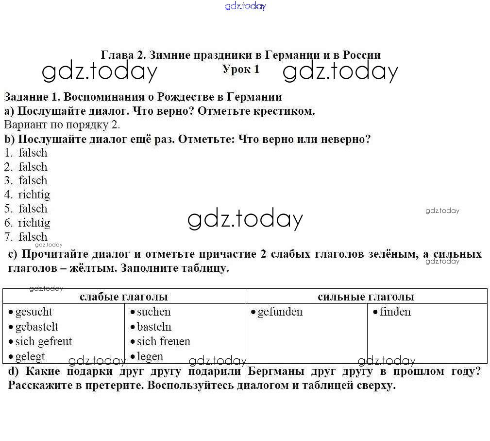 На страницах сайта gdz.today вы найдете учебный и вспомогательный материал, направленный на улучшения знаний школьной программы. ГДЗ - онлайн мир знаний Уроки 1-7 Решение к главе 2. Зимние праздники в Германии и в России 1 Учебнику по Немецкому языку для 7 класса Радченко, Конго Просвещение Wunderkinder 2016