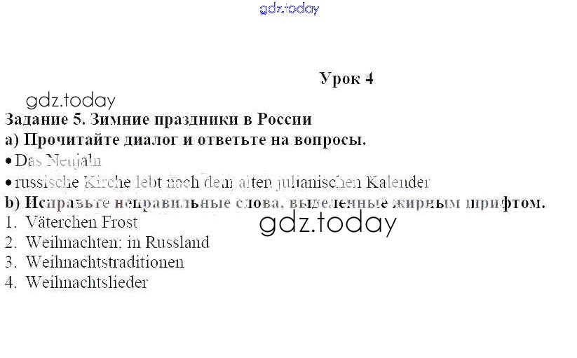 На страницах сайта gdz.today вы найдете учебный и вспомогательный материал, направленный на улучшения знаний школьной программы. ГДЗ - онлайн мир знаний Уроки 1-7 Решение к главе 2. Зимние праздники в Германии и в России 5 Учебнику по Немецкому языку для 7 класса Радченко, Конго Просвещение Wunderkinder 2016