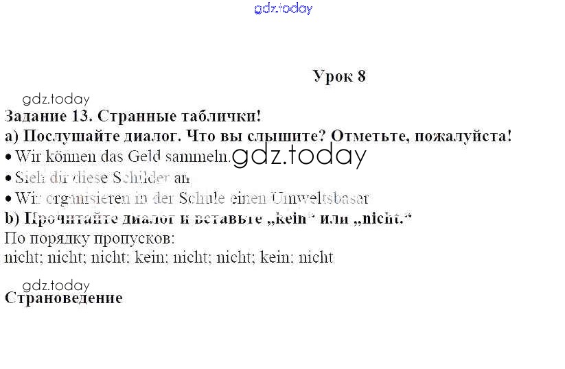 На страницах сайта gdz.today вы найдете учебный и вспомогательный материал, направленный на улучшения знаний школьной программы. ГДЗ - онлайн мир знаний Уроки 1-12 Решение к главе 3. Защита окружающей среды 13 Учебнику по Немецкому языку для 7 класса Радченко, Конго Просвещение Wunderkinder 2016