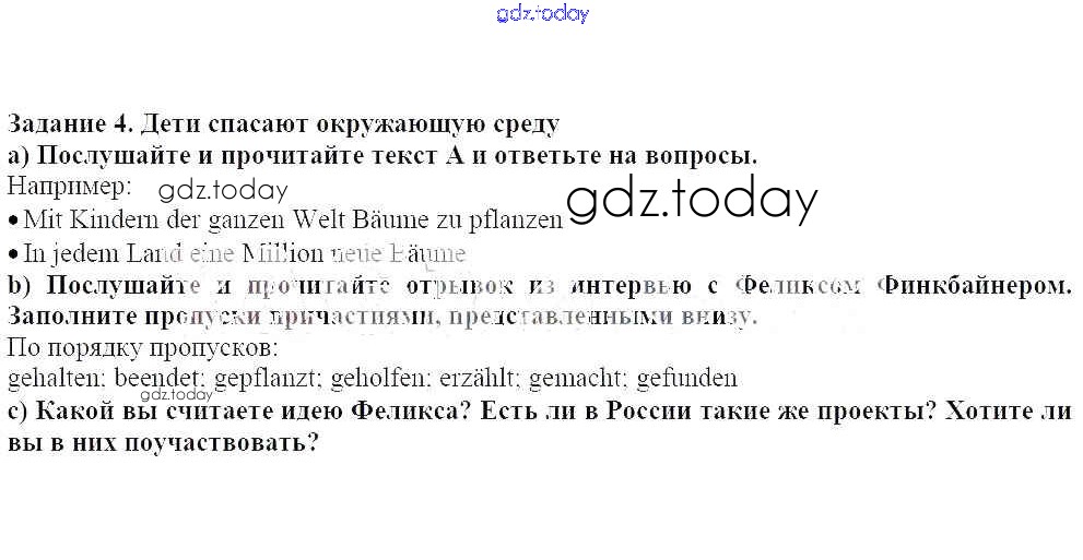 На страницах сайта gdz.today вы найдете учебный и вспомогательный материал, направленный на улучшения знаний школьной программы. ГДЗ - онлайн мир знаний Уроки 1-12 Решение к главе 3. Защита окружающей среды 4 Учебнику по Немецкому языку для 7 класса Радченко, Конго Просвещение Wunderkinder 2016