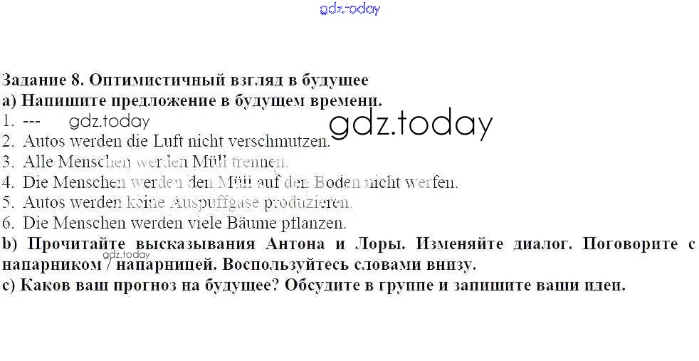 На страницах сайта gdz.today вы найдете учебный и вспомогательный материал, направленный на улучшения знаний школьной программы. ГДЗ - онлайн мир знаний Уроки 1-12 Решение к главе 3. Защита окружающей среды 8 Учебнику по Немецкому языку для 7 класса Радченко, Конго Просвещение Wunderkinder 2016
