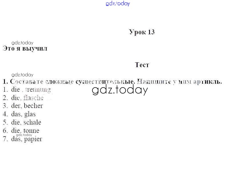 На страницах сайта gdz.today вы найдете учебный и вспомогательный материал, направленный на улучшения знаний школьной программы. ГДЗ - онлайн мир знаний Урок 13 Решение к главе 3. Защита окружающей среды 1 Учебнику по Немецкому языку для 7 класса Радченко, Конго Просвещение Wunderkinder 2016