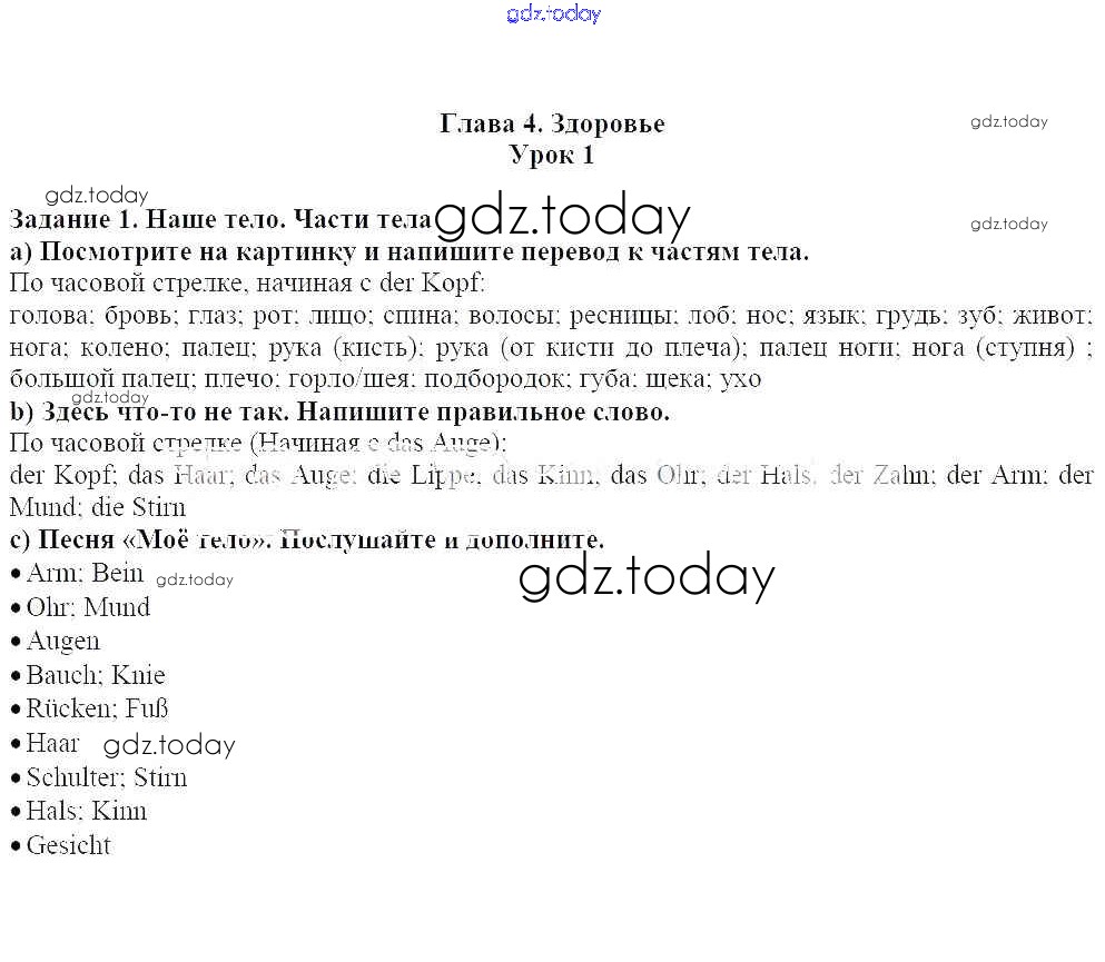 На страницах сайта gdz.today вы найдете учебный и вспомогательный материал, направленный на улучшения знаний школьной программы. ГДЗ - онлайн мир знаний Уроки 1-15 Решение к главе 4. Здоровье 1 Учебнику по Немецкому языку для 7 класса Радченко, Конго Просвещение Wunderkinder 2016
