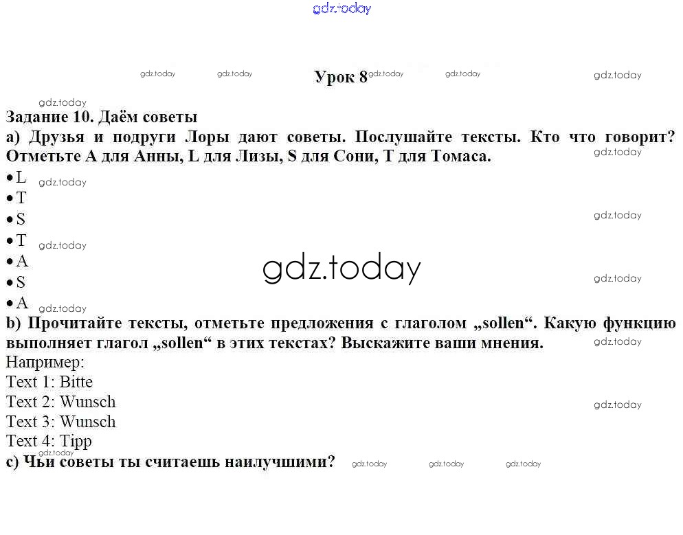 На страницах сайта gdz.today вы найдете учебный и вспомогательный материал, направленный на улучшения знаний школьной программы. ГДЗ - онлайн мир знаний Уроки 1-15 Решение к главе 4. Здоровье 10 Учебнику по Немецкому языку для 7 класса Радченко, Конго Просвещение Wunderkinder 2016