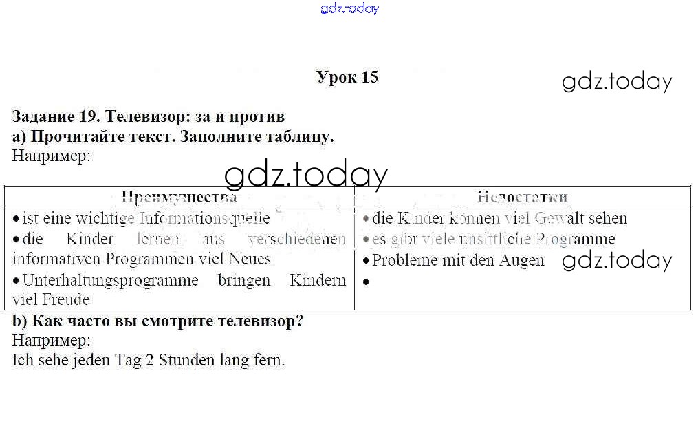 На страницах сайта gdz.today вы найдете учебный и вспомогательный материал, направленный на улучшения знаний школьной программы. ГДЗ - онлайн мир знаний Уроки 1-15 Решение к главе 4. Здоровье 19 Учебнику по Немецкому языку для 7 класса Радченко, Конго Просвещение Wunderkinder 2016