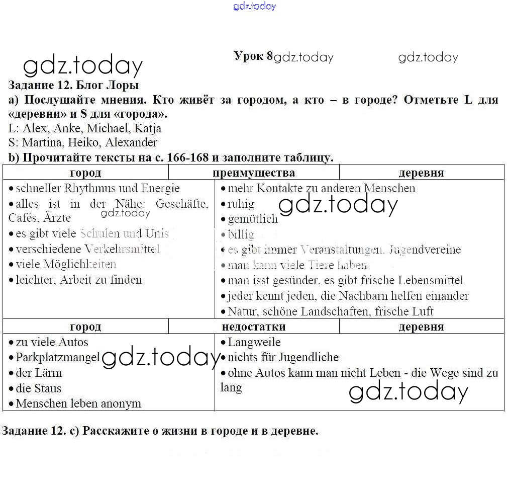 На страницах сайта gdz.today вы найдете учебный и вспомогательный материал, направленный на улучшения знаний школьной программы. ГДЗ - онлайн мир знаний Уроки 1-8 Решение к главе 5. Город и деревня 12 Учебнику по Немецкому языку для 7 класса Радченко, Конго Просвещение Wunderkinder 2016