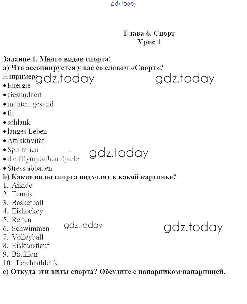 На страницах сайта gdz.today вы найдете учебный и вспомогательный материал, направленный на улучшения знаний школьной программы. ГДЗ - онлайн мир знаний Уроки 1-8 Решение к главе 6. Спорт 1 Учебнику по Немецкому языку для 7 класса Радченко, Конго Просвещение Wunderkinder 2016