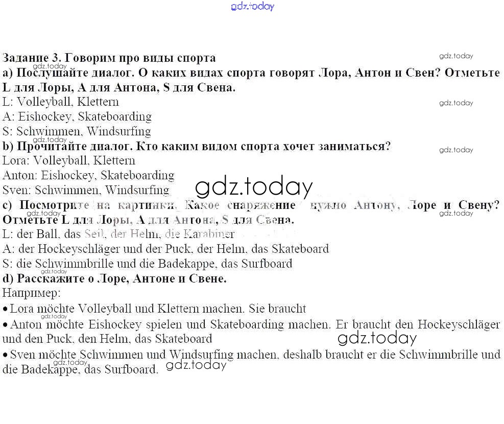 На страницах сайта gdz.today вы найдете учебный и вспомогательный материал, направленный на улучшения знаний школьной программы. ГДЗ - онлайн мир знаний Уроки 1-8 Решение к главе 6. Спорт 3 Учебнику по Немецкому языку для 7 класса Радченко, Конго Просвещение Wunderkinder 2016