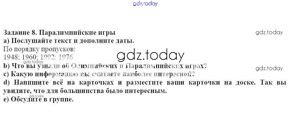 На страницах сайта gdz.today вы найдете учебный и вспомогательный материал, направленный на улучшения знаний школьной программы. ГДЗ - онлайн мир знаний Уроки 1-8 Решение к главе 6. Спорт 8 Учебнику по Немецкому языку для 7 класса Радченко, Конго Просвещение Wunderkinder 2016