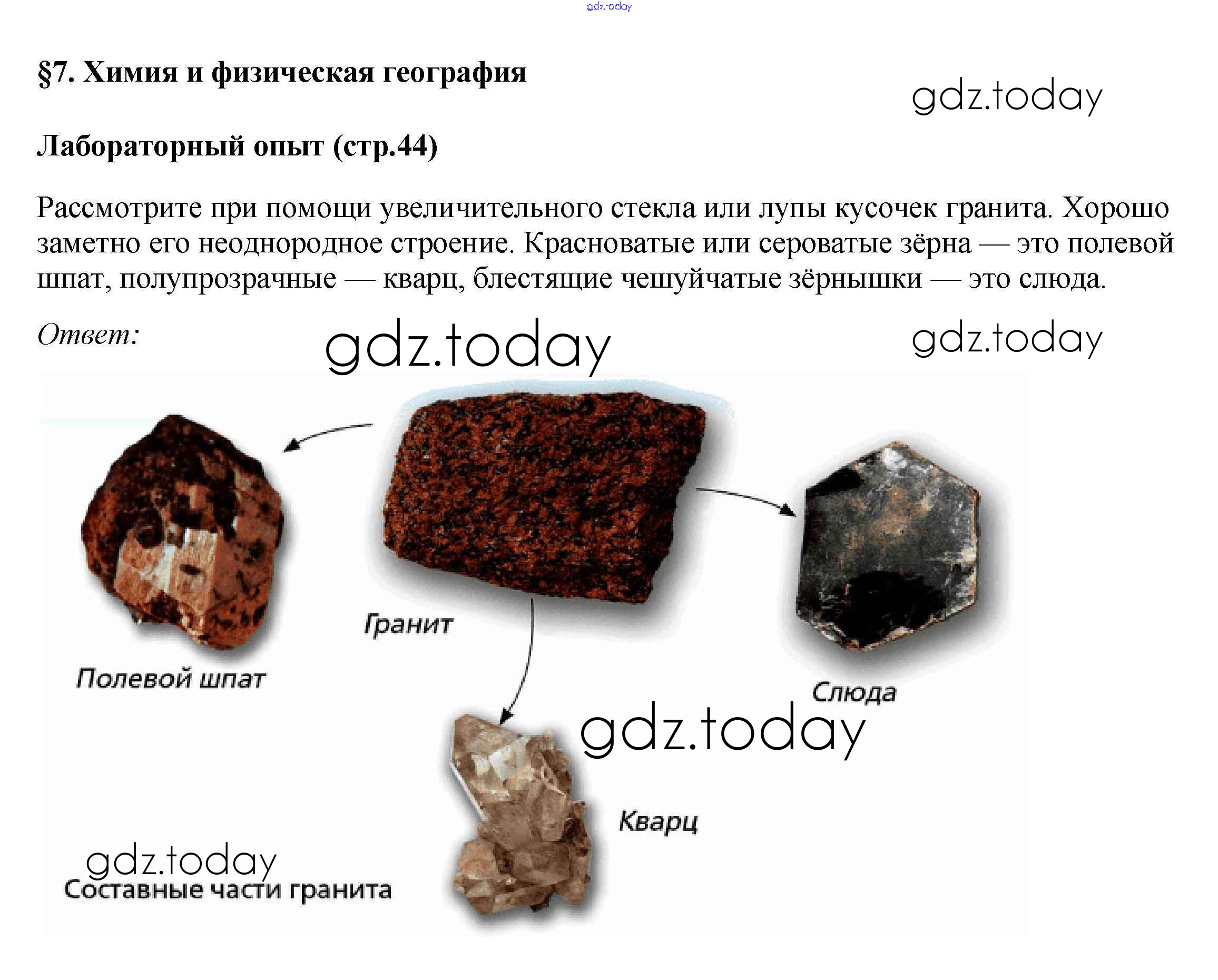 На страницах сайта gdz.today вы найдете учебный и вспомогательный материал, направленный на улучшения знаний школьной программы. ГДЗ - онлайн мир знаний Лабораторный опыт Решение к §7 стр.44 Учебнику по Химии для 7 класса Габриелян, Остроумов Дрофа 2016