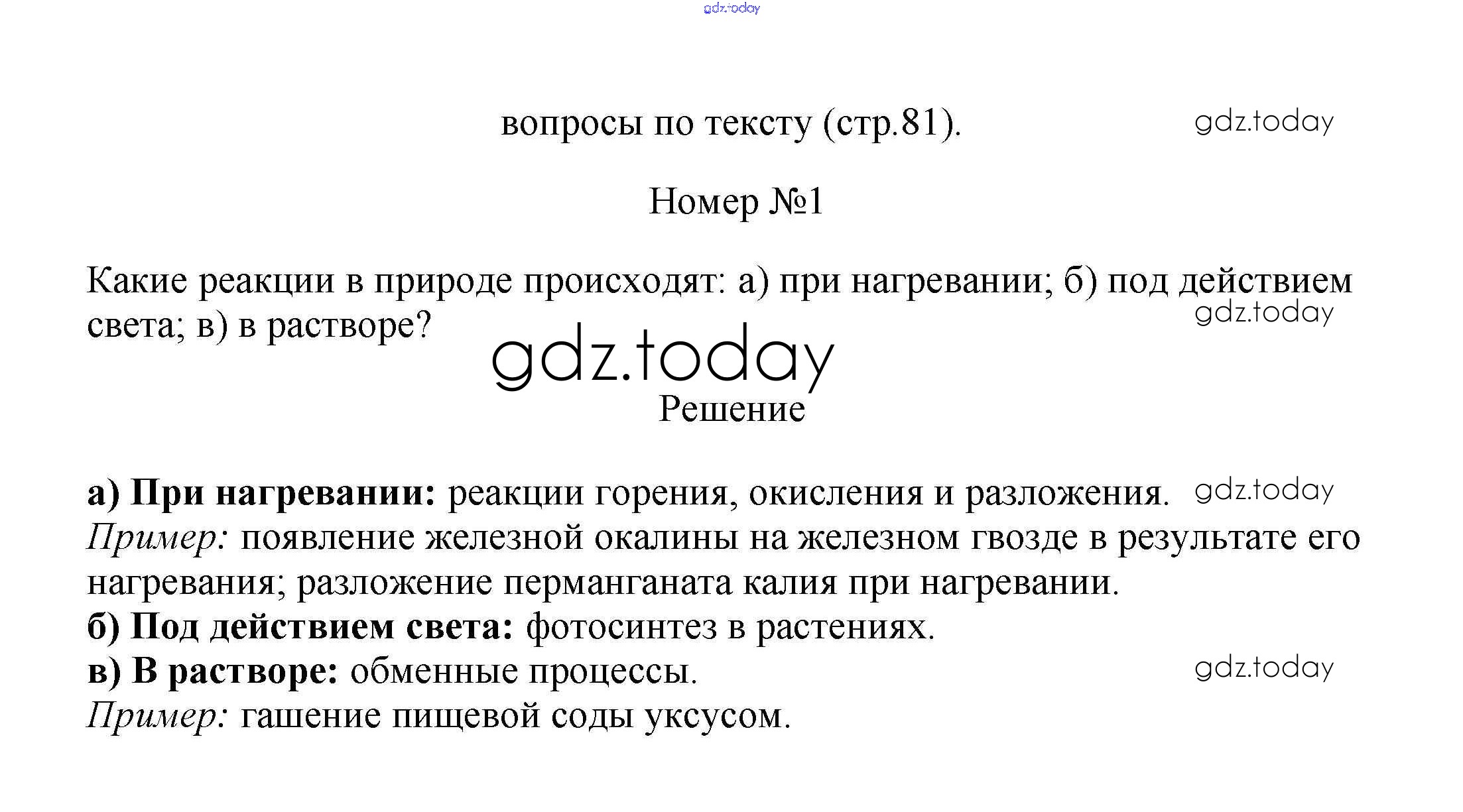 На страницах сайта gdz.today вы найдете учебный и вспомогательный материал, направленный на улучшения знаний школьной программы. ГДЗ - онлайн мир знаний Вопросы по тексту Решение к §12. Превращения веществ - химические реакции стр.81 Учебнику по Химии для 7 класса Еремин, Дроздов Дрофа 2020