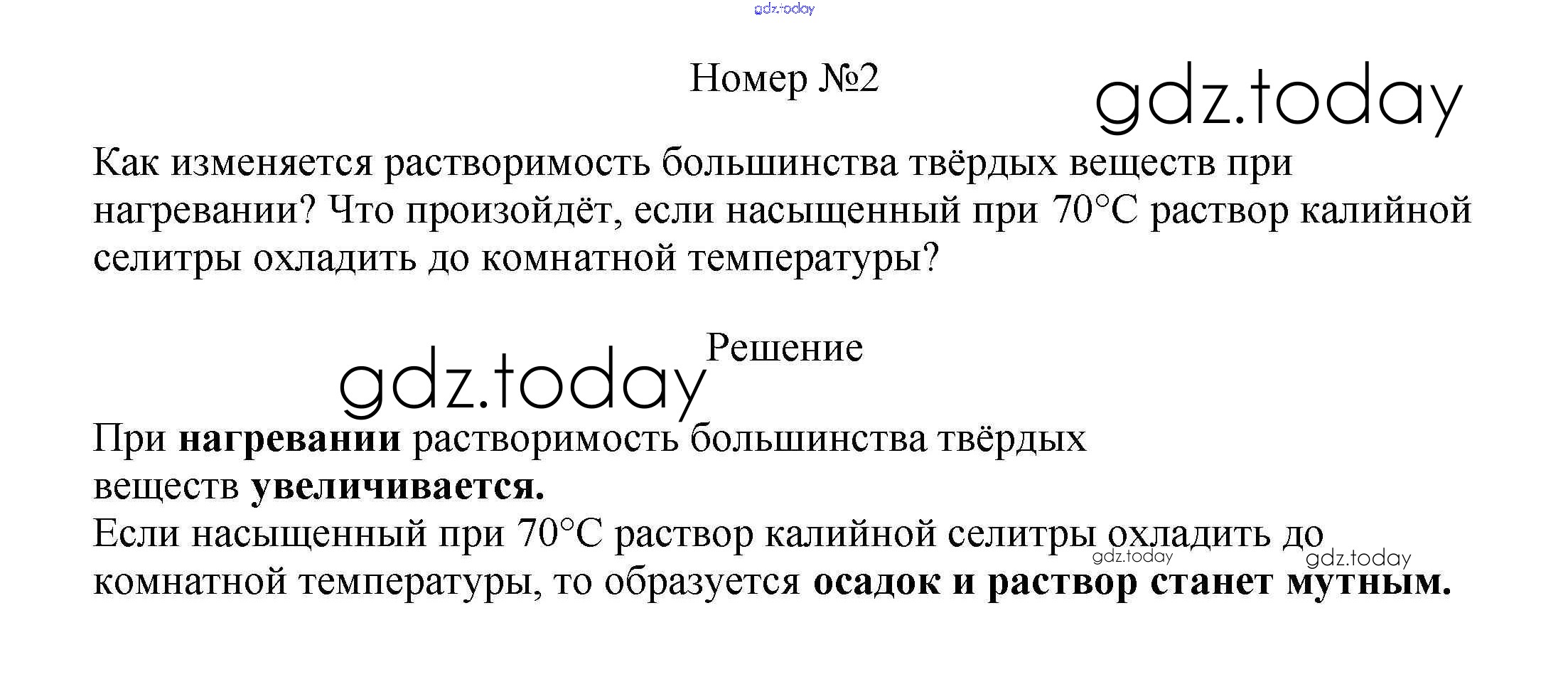 На страницах сайта gdz.today вы найдете учебный и вспомогательный материал, направленный на улучшения знаний школьной программы. ГДЗ - онлайн мир знаний Вопросы и задания Решение к §13. Растворение 2 Учебнику по Химии для 7 класса Еремин, Дроздов Дрофа 2020