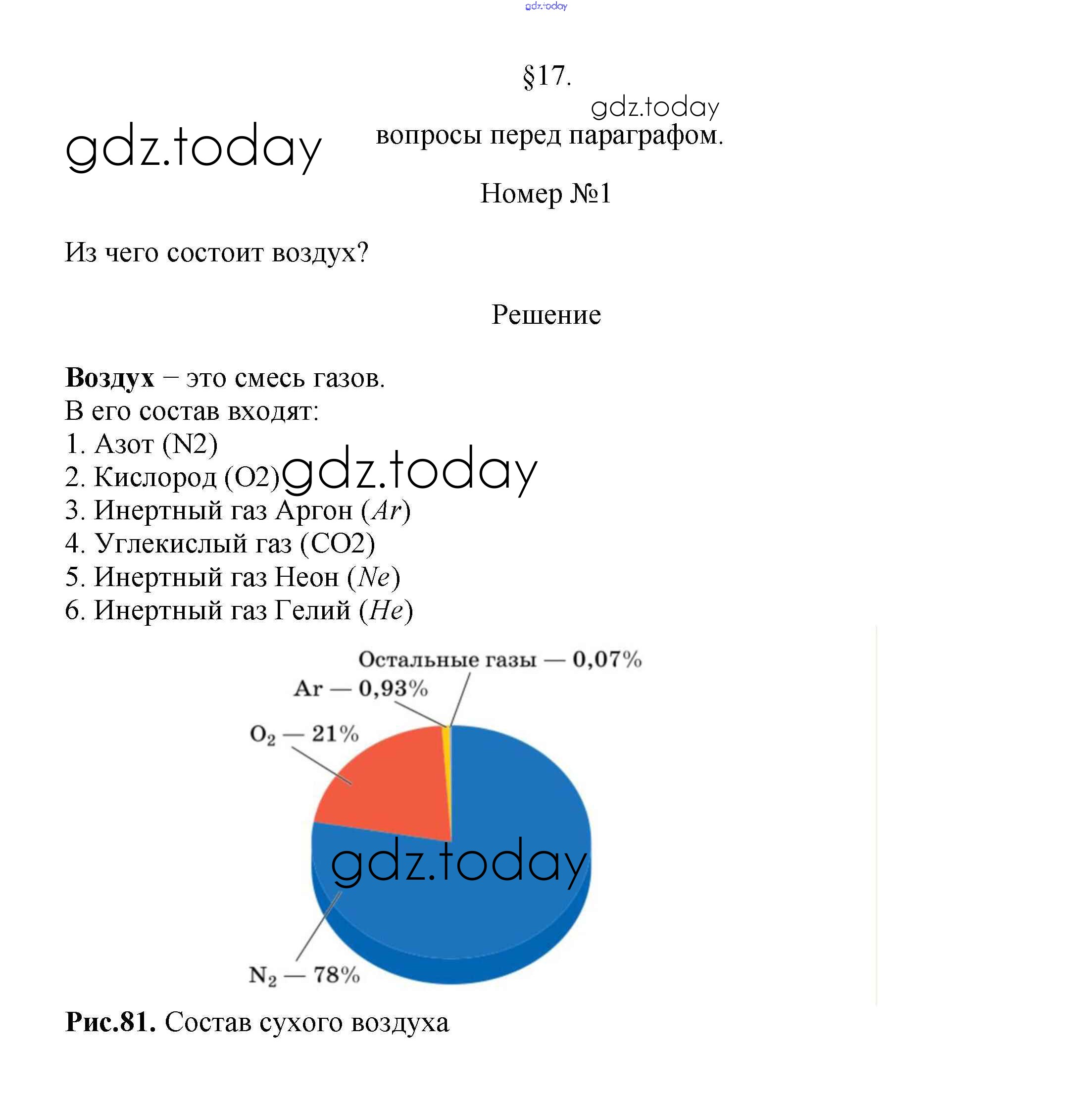 На страницах сайта gdz.today вы найдете учебный и вспомогательный материал, направленный на улучшения знаний школьной программы. ГДЗ - онлайн мир знаний Вопросы перед параграфом Решение к §17. Воздух и кислород 1 Учебнику по Химии для 7 класса Еремин, Дроздов Дрофа 2020