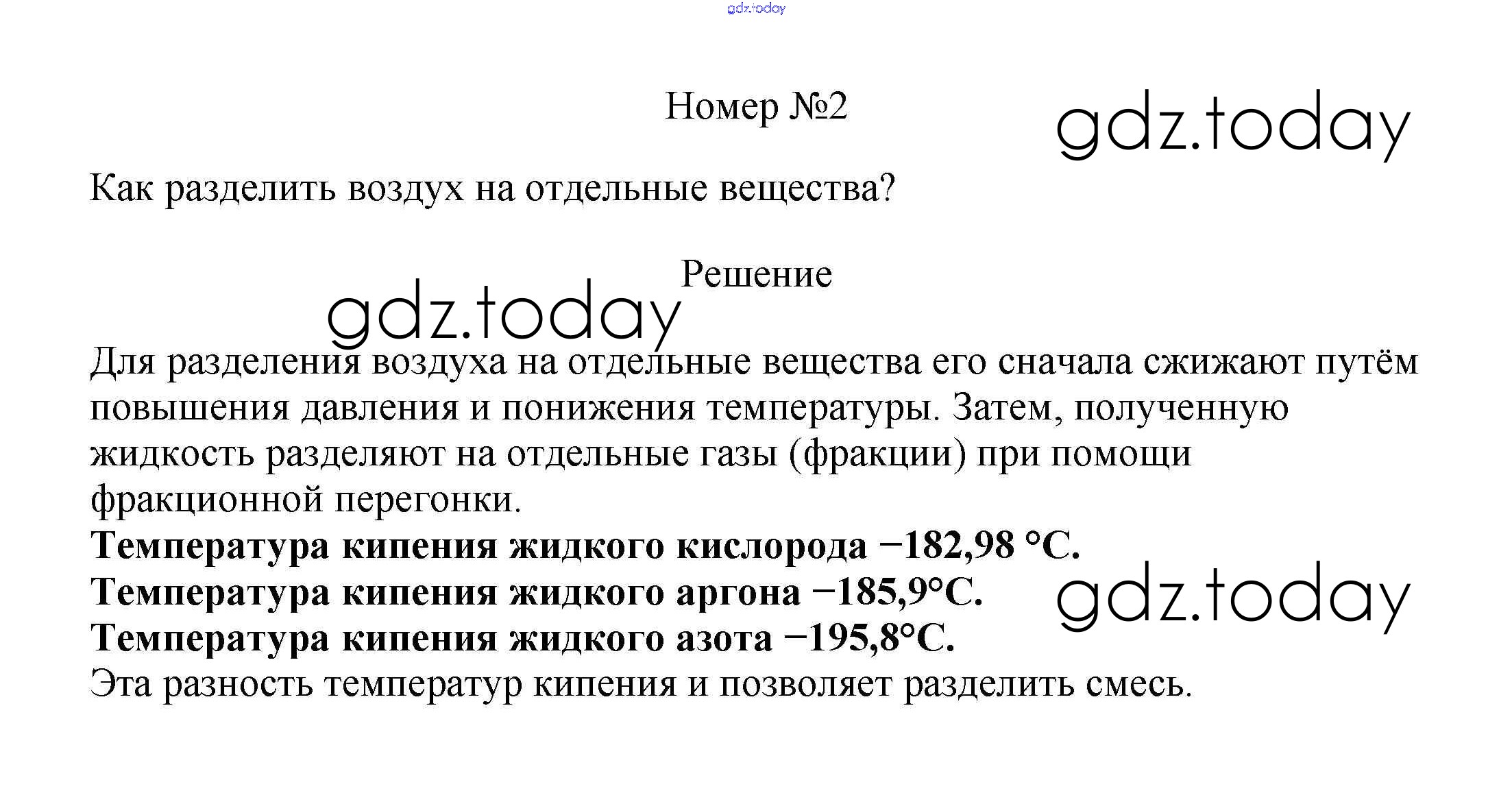 На страницах сайта gdz.today вы найдете учебный и вспомогательный материал, направленный на улучшения знаний школьной программы. ГДЗ - онлайн мир знаний Вопросы перед параграфом Решение к §17. Воздух и кислород 2 Учебнику по Химии для 7 класса Еремин, Дроздов Дрофа 2020