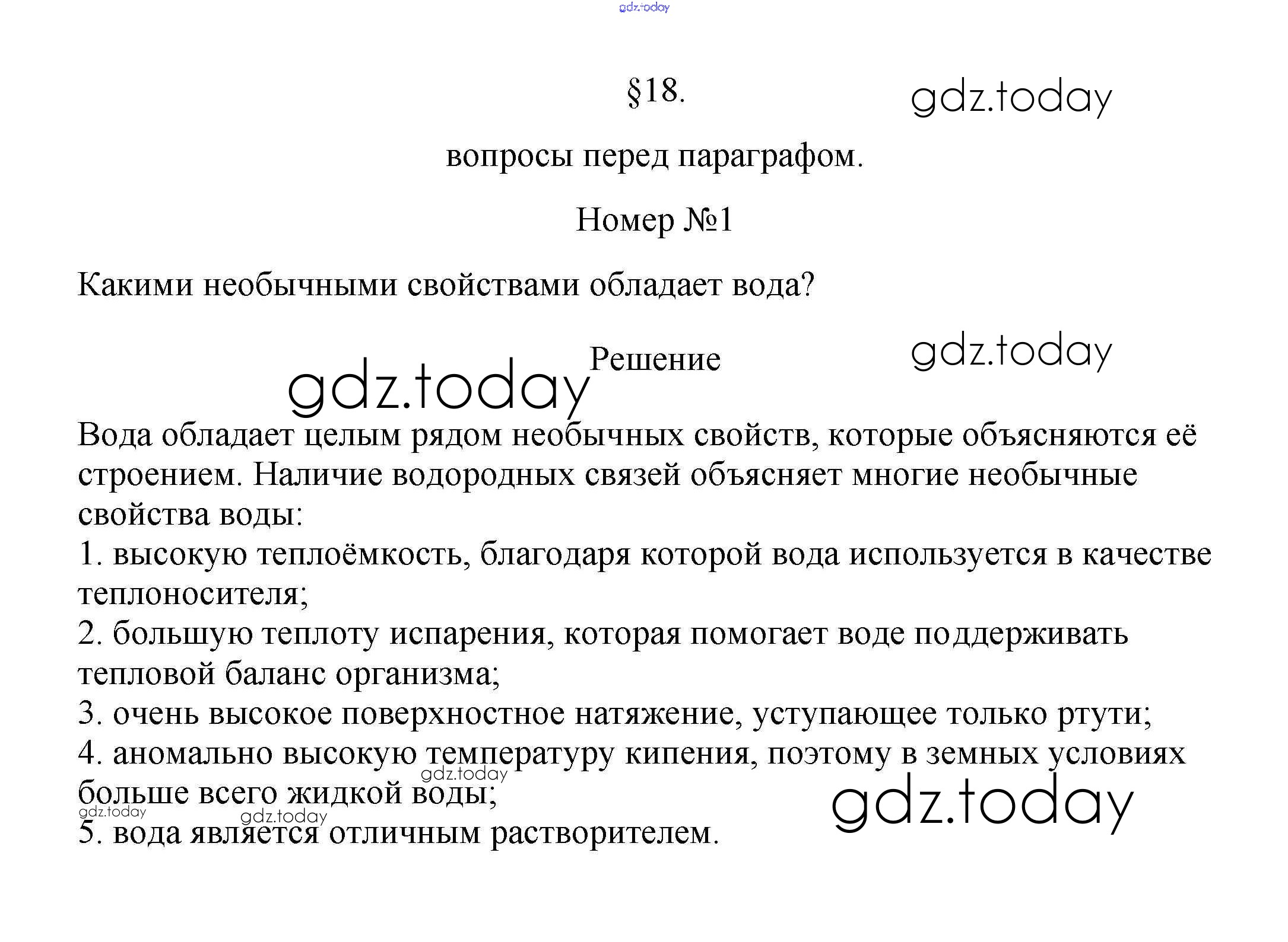 На страницах сайта gdz.today вы найдете учебный и вспомогательный материал, направленный на улучшения знаний школьной программы. ГДЗ - онлайн мир знаний Вопросы перед параграфом Решение к §18. Вода 1 Учебнику по Химии для 7 класса Еремин, Дроздов Дрофа 2020